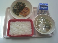 【献立】ごはん 牛乳 いわしの生姜煮 ごまあえ まろやかみそしる