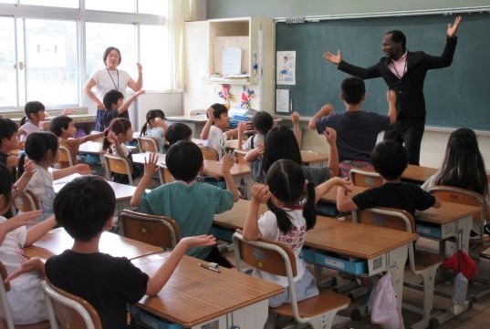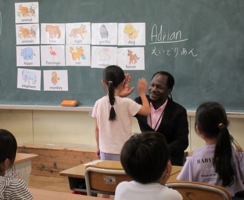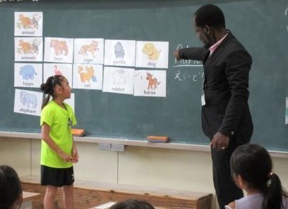 7月15日(火)1年生がAETの先生と英語の学習をしました。動物の名前や「I like~」の言い方を教えてもらい、自分の好きなものを伝え合いました。英語を使って、たくさんの友達と会話をすることが出来ました。みんな笑顔でとても楽しそうでした。