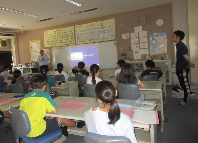 9月から新しいAETの先生が配置になり、4年生は今日が初めての授業でした。AETの先生の自己紹介を聞き、子供たちからもたくさんの質問がでました。ミニゲームをして、笑顔いっぱいです。みんなで楽しみながら英語に親しんでいました。