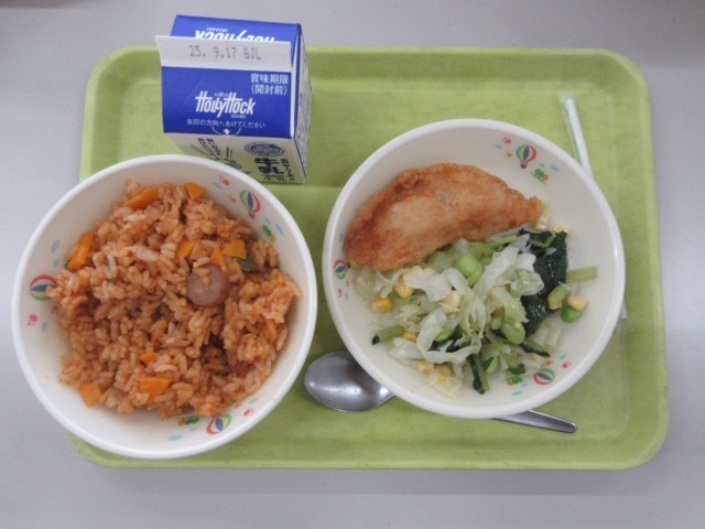 献立 ジャンバラヤ 牛乳 枝豆サラダ