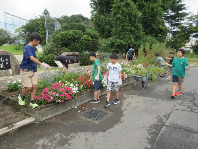 9月5日の6校時は、委員会活動でした。給食委員会は、一人一人各教室の給食台を担当し、ピカピカに磨いてくれました。図書委員会は、読書週間に向けて、手作りのしおりを丁寧に作っていました。栽培委員会は、協力して花壇の草取りをしました。花壇がきれいになりました。春に、培委員の児童と苗植えした花も生長し、きれいに彩っています。