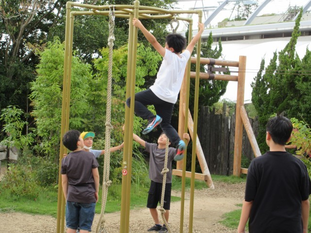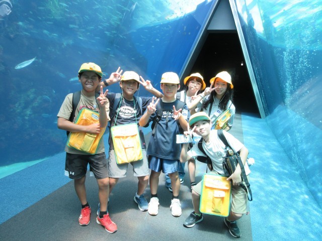 午後の見学は、アクアマリンふくしまです。「アクアマリンふくしま」は、様々な自然環境が再現され、いろいろな体験ができる水族館です。子供たちは、グループごとに館内の見学を楽しみました。また、アスレチックで遊ぶ子供たちからは、笑顔がたくさん見られました。