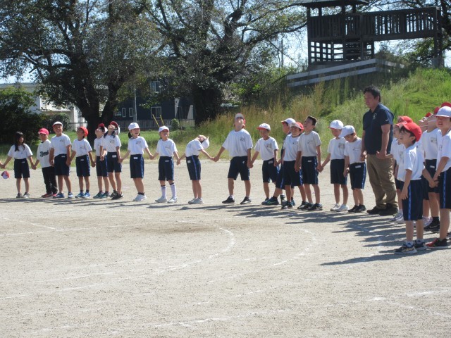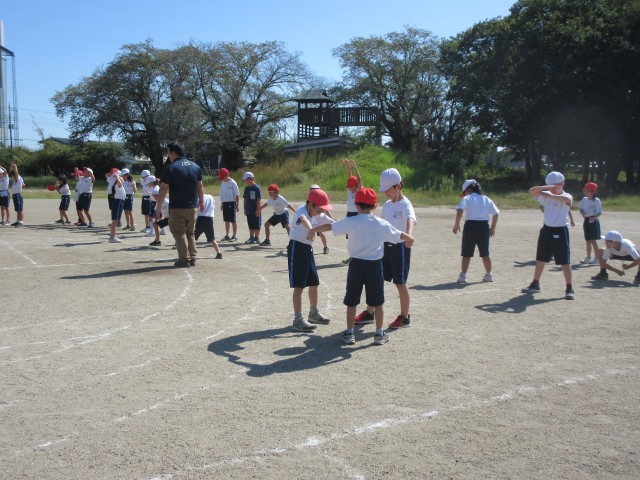 3年生の国語では、物語文「ちいちゃんのかげおくり」を学習しています。本時の後半では、学級のみんなで運動場に出ました。「ちいちゃんのかげおくり」のお話の、透き通るような青い空を見上げ、家族4人でかげおくりをしたように、学級のみんなでかげおくりを体験しました。