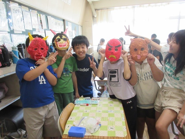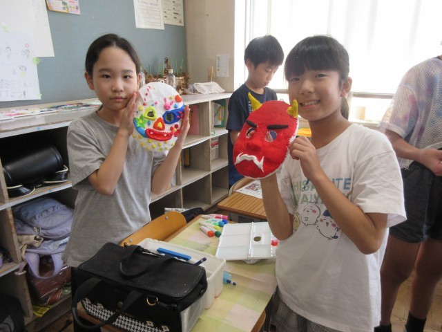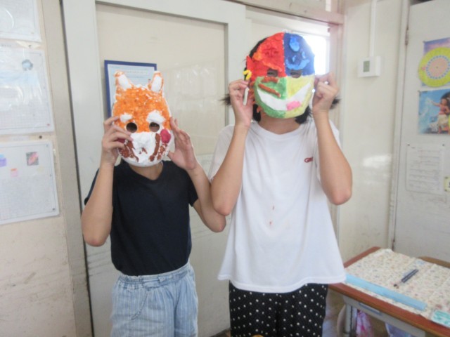 4年生の図画工作では、お面づくりをしました。一人一人のテーマにそって、楽しく色づけにも取り組みました。全員のお面が掲示されるのが楽しみです。