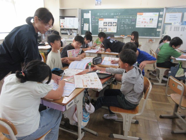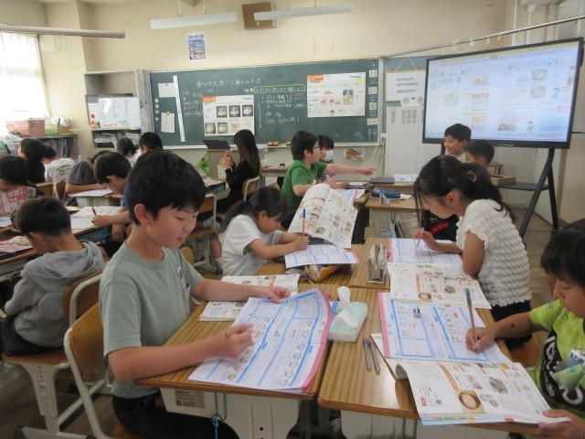 5年生の家庭科の学習では、「ご飯と味噌汁」の調理実習に向けて、計画を立てました。味噌汁の作り方を確認したり、具を考えたりと、グループごとに協力して話し合っていました。調理実習が楽しみですね。