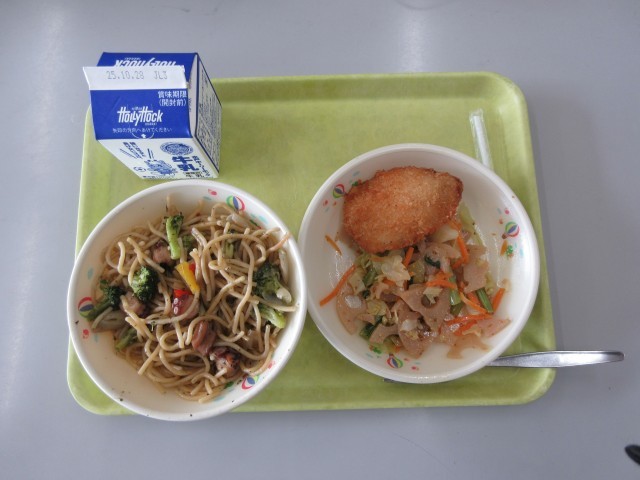 今日は茨城県の豊かな特産品が取り入れられています。那珂湊水産加工会社で加工された、たこ。筑波山麓の大自然に囲まれた場所で育てられた「つくば鶏」。霞ヶ浦周辺で採れた新鮮なれんこん。地域の食材を使った献立でおいしくいただきました。