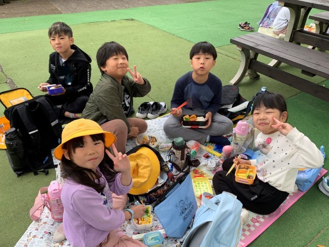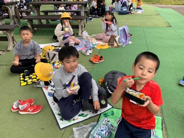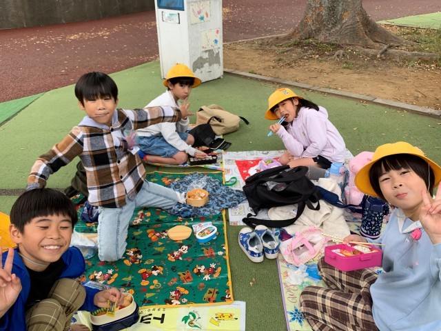 待ちに待ったお弁当タイムです。動物園を歩き回ったので、みんなお腹ペコペコです。おいしくいただきました。みんないい笑顔ですね。保護者の皆様には、朝早くから、お弁当の準備をありがとうございました。