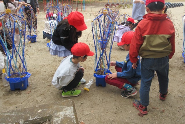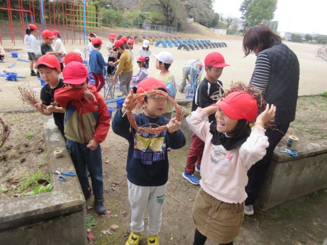 1年生は、アサガオのツルでリースづくりをしました。上手にツルを巻くことができて、とってもうれしそうです。今後、飾り付けをしてクリスマスリースを作る予定です。楽しみですね。