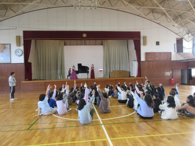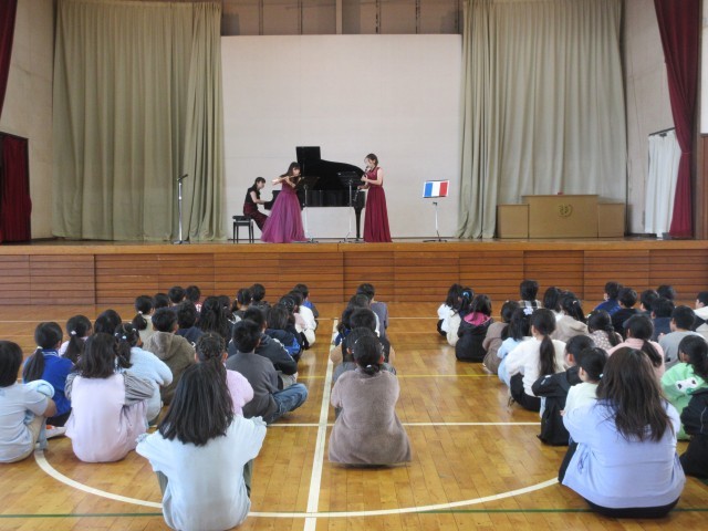 茨城県出身の音楽家をお招きして、4年生の音楽出前授業を行いました。フルート、クラリネット、ピアノの生の演奏を間近で聴くことができる、素敵な時間となりました。また、曲の合間には、管楽器、弦楽器、鍵盤楽器のお話もあり、子どもたちは興味深く聞いていました。