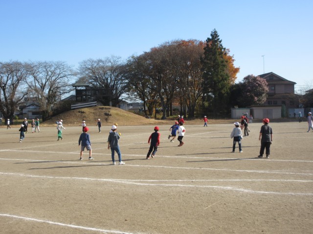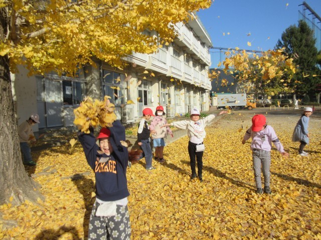昼休みの様子です。ドッジボールや遊具で遊ぶ子供たち。元気な子供たちの声が運動場に戻ってきました。大きないちょうの木の下では、低学年の児童が落ち葉のシャワーで楽しく遊んでいました。笑顔がいっぱいです。「明日もまたやろうね。」と声をかけあう姿が微笑ましいです。