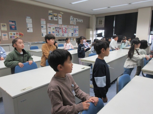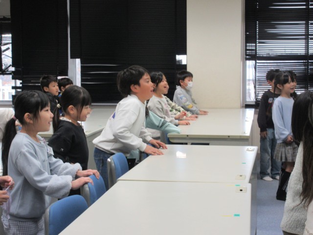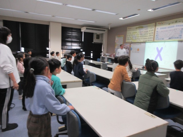 1年生の外国語の時間の様子です。「ABCの歌」を元気いっぱい歌っている声が廊下まで響いてきました。歌いながらジャンプして身体表現もしながら、楽しく英語の歌に親しんでいました。「もう1回やりたい!」と意欲が溢れていました。