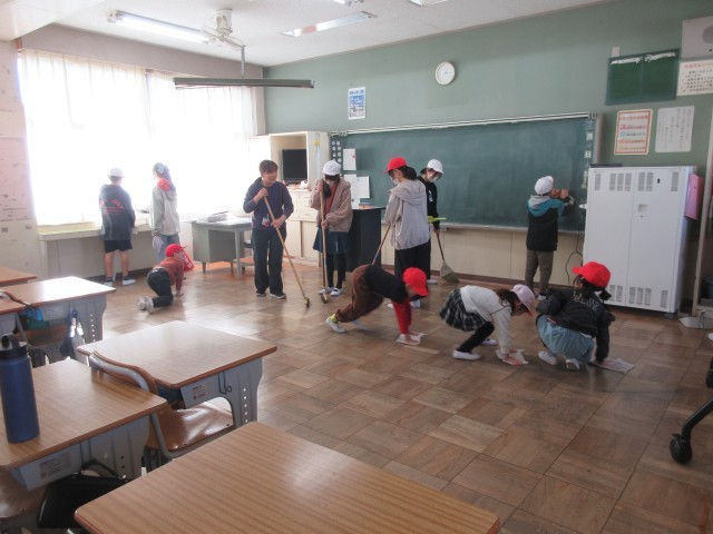 本日のロング昼休みは、たてわり班活動として、たてわり清掃をしました。自分たちが使用した場所を責任をもって清掃することで、気持ちよく過ごせるようにしていきます。各班ともめあてをもち、高学年と下級生が協力して校舎をきれいにしました。