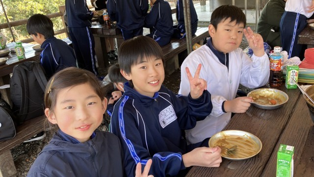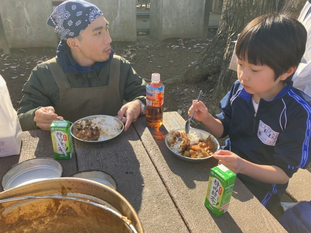 自分たちで、焚き火して、お米を炊いて、野菜を洗って切って炒めて、火の調整や煙に四苦八苦しながら作ったカレーは、どの班も美味しそうでした😊