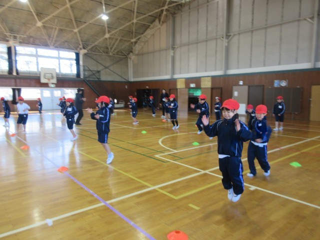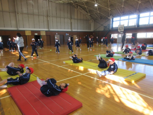 本日、「パーソナルな体づくり」を1年生は3校時に、2年生は4校時に実施しました。マットで「ゆりかご」は、決められた時間内がんばっていました。後半は、後転にも挑戦しました。また、リズムに合わせて楽しくジャンプも楽しく取り組んでいました。