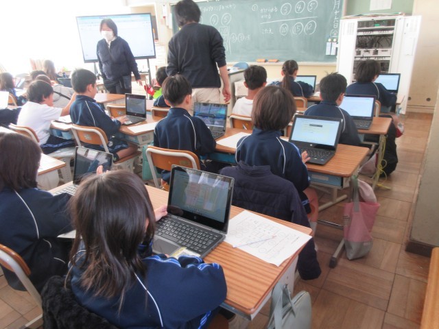 2年生は、「かけ算プログラミング」に挑戦しました。自分の選んだ数字で、かけられる数とかける数の数字が重なると答が出るプログラムをつくりました。とても意欲的に取り組む姿が見られました。