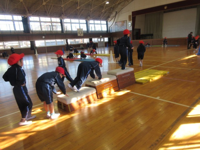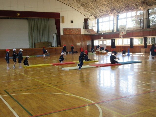 1・2年生は、外部講師をお招きして「パーソナルな体づくり」運動を実施しました。本日は、マットや平均台、跳び箱を使った4つのメニューによるサーキット活動にも楽しく集中して取り組んでいました。