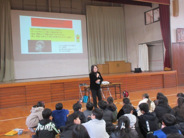 メディア教育指導員を講師にお招きし、メディア教育講演会を実施しました。考えよう インターネット~あなたの命と未来を守るために~をテーマにご講話いただきました。インターネットを使うのに必要な4つの力「判断力・自制力・責任力・相談力」をつけるために必要なことは何かを考えていきました。様々な事例を通して、自分のメディアリテラシーについて考えました。