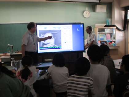 9月9日、5年生は、株式会社日立ハイテクより講師として3名をお招きし、理科特別授業を行いました。電子顕微鏡を使い、見えないものをよく見ることで、どんな世界がひろがるか確かめる学習でした。電子顕微鏡により、目では見えないしくみや形が分かると、児童たちは、驚きの声をあげていました。