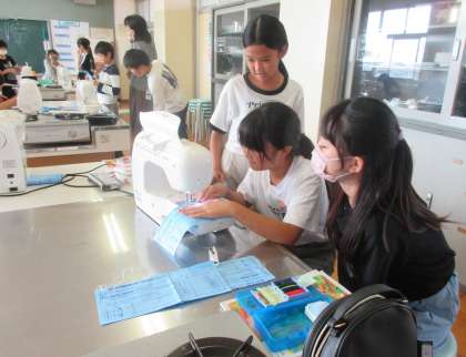 10月3日、家庭科の学習でミシンの学習に入りました。子供たちは、練習用の布に縫い始めと縫い終わりに気を付けながら、慎重に丁寧に直線縫いの練習をしていました。「できた!」とうれしそうに見せてくれました。明日の家庭科の学習では、ミシンボランティアの皆さんにご協力いただく予定です。どうぞよろしくお願いします。