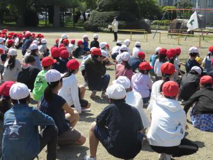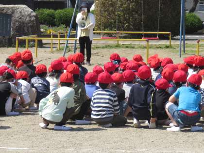 本日2校時に避難訓練を行いました。新しい教室での学校生活の中で,地震や火災が起こったときに避難経路を通って安全に避難できるよう訓練を行いました。教室から避難場所まで「おかしも」をきちんと守って避難することができていました。