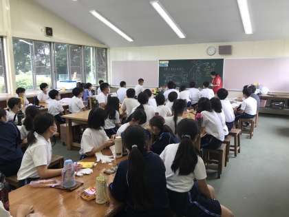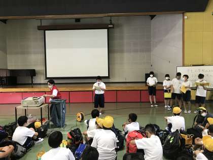 予定より早く白浜少年自然の家に到着し、焼き杉創作活動とドッヂボールを楽しんでいます。