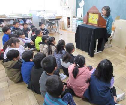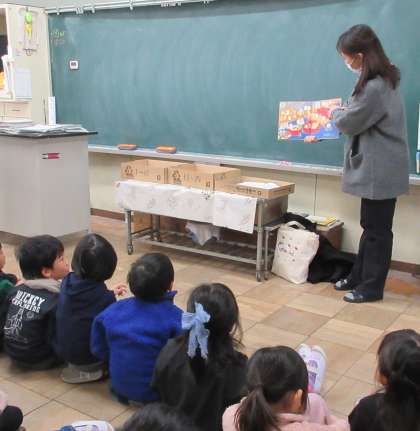12月13日、さくらんぼの皆さんにお越しいただき、朝の読み聞かせがありました。クリスマスやお正月にちなんだ絵本を中心に読み聞かせをしてくださいました。ボランティアさくらんぼの皆さんと楽しい時間を過ごすことができました。