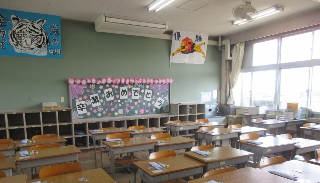 6年生の教室が5年生によって、きれいに飾り付けられました。