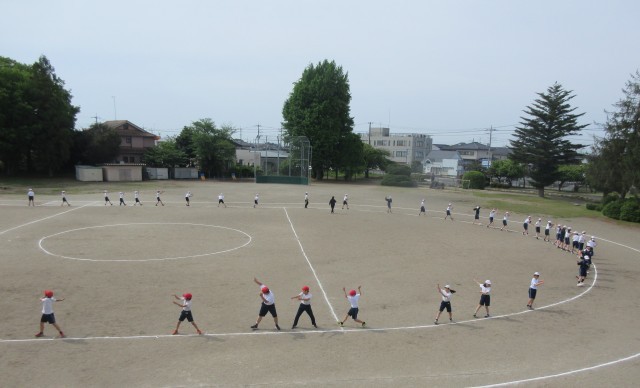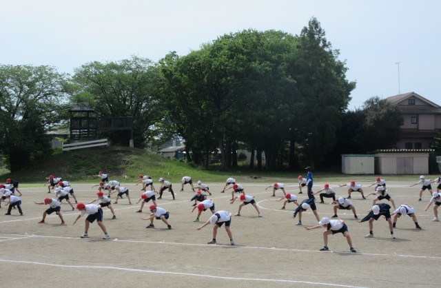 「ヤー!」「ソーラン!ソーラン!」6年生の元気なかけ声が校庭に響き渡りました。6年生は、初めて校庭でソーランの練習をしました。和太鼓が鳴り響き、大迫力です。短期間でここまで仕上げた6年生、すばらしいです。小学校最後の運動会となる6年生の力強いダンス、どうぞご期待ください。