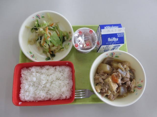 献立  ご飯 牛乳 豚肉と厚揚げのうま煮