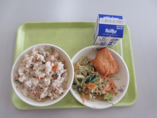 献立  こぎつねごはん  牛乳  もうかフライ