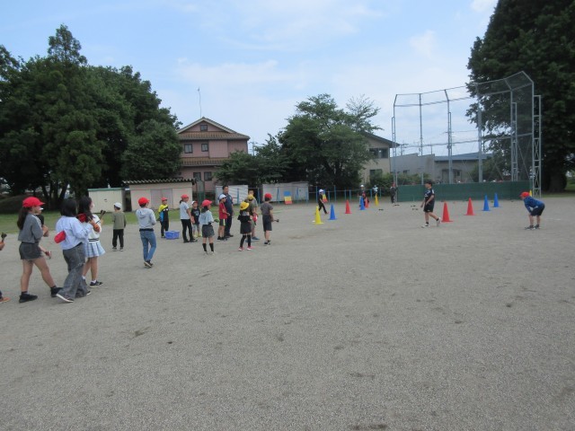 「ボールスローチャレンジを昼休みにやります。」と、運動委員会の児童が放送で呼びかけをし、たくさんの児童が集まりました。投力を伸ばし、体力テストの記録がアップするよう、昼休みにも意欲的に練習に取り組んでいます。