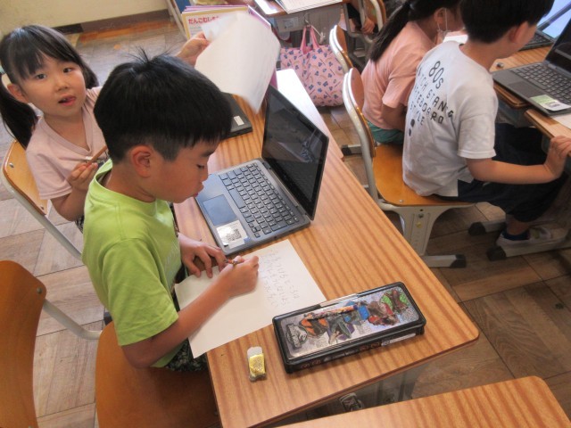 2年生の生活科では、虫の飼い方について学習しました。ダンゴムシやカタツムリなど、自分の調べたい虫についてインターネットや図鑑などで調べました。えさや気を付けることなど、ワークシートにしっかりとまとめてあり、うれしそうに見せてくれました。