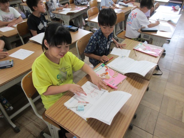 2年生は、既習漢字を使って、漢字ビンゴをしました。「リーチ!」「ビンゴ!」「ダブルビンゴ!」「トリプルビンゴ!」と、楽しく学習に取り組んでいました。