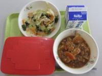 献立 ご飯 牛乳 チキンカレー 海そうサラダ 【献立のねらい】給食のごはんに...