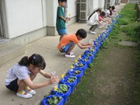 生活科の学習で、1年生はアサガオを、2年生は野菜を一人一鉢で育てています。毎朝登...