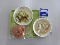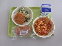 献立 ハーフナポリタン ミニコッペパン 牛乳 コロッケ ツナ豆マヨ...