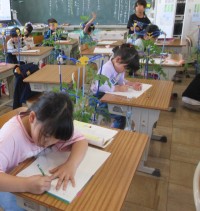 2年生の国語では、生活科で育てている野菜を観察した様子を文章に書く学習をしました...