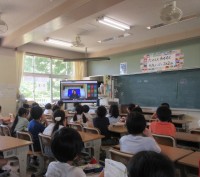 7月15日(火)1年生がAETの先生と英語の学習をしました。動物の名前や「I l...