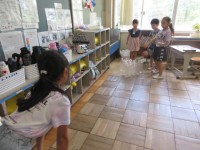 1年生の教室では、お楽しみ会をしていました。グループごとに、手作りのわなげやペッ...