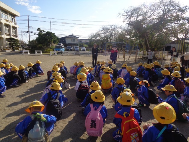本日、1年生は秋の遠足で「大洗アクアワールド」と「ひたち海浜公園」に遠足に行きました。朝、出発する前には、校長先生、6年生、まえまえちゃんに見送ってもらいました。1年生の子どもたちは嬉しそうに手を振って出発しました。