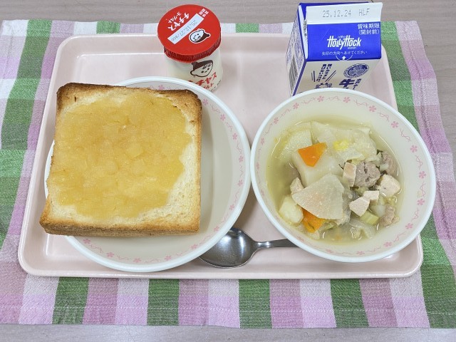アップルシナモントースト 牛乳 冬野菜のポトフ ヨーグルト