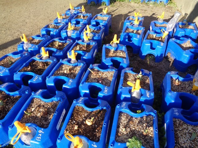 冬の あいだ、しずかに ねむっていた チューリップの めが、すこしずつ 大きくなってきました!