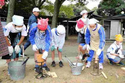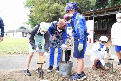 最初に、白浜少年自然の家の方の話を聞きました。かまどの火起こしの担当、カレー作りの担当、ご飯の担当に分かれて作業開始です。