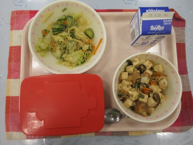【献立】ごはん 牛乳 麻婆豆腐 バンサンスー
