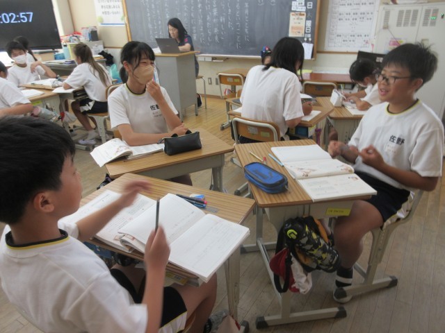 また、5年生の国語「どちらを選びますか」では、友達と立場をはっきりさせて話し合い、意見交換することで、2つの立場から考える良さに子供たちは気付きました。