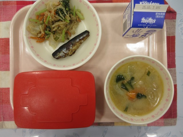 【献立】ごはん 牛乳 いわしのしょうが煮 ごまあえ まろやかみそ汁