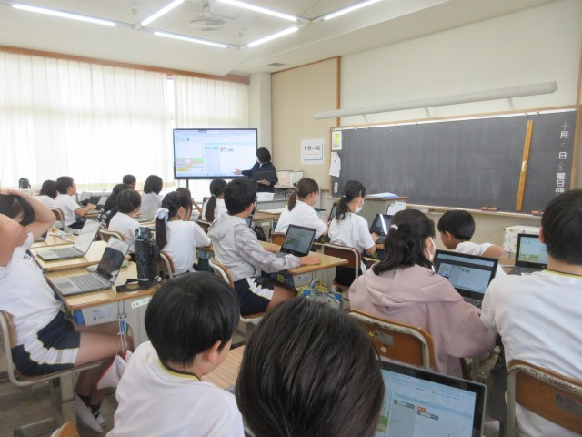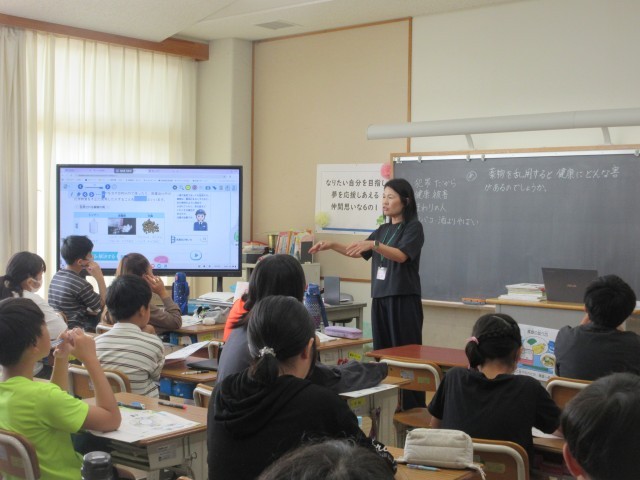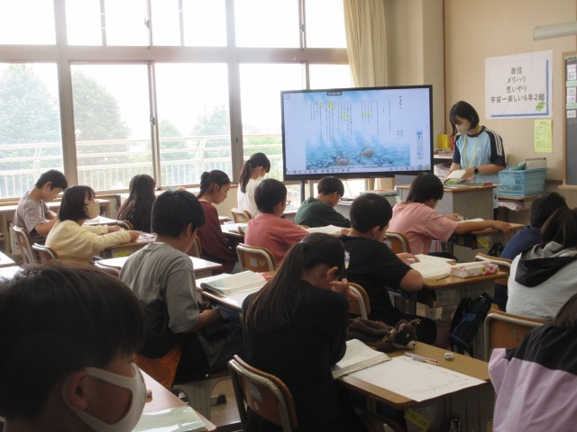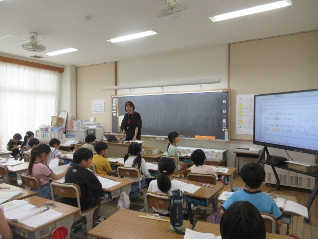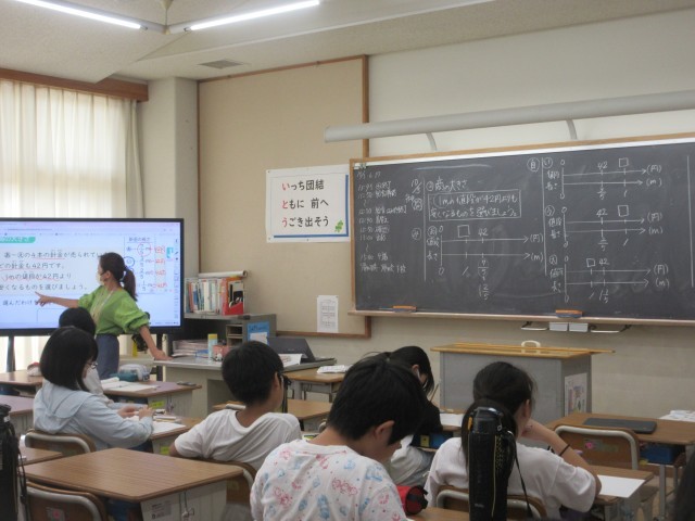 各学年、各学級では、教科を問わず電子黒板と黒板を併用して授業を進めています。