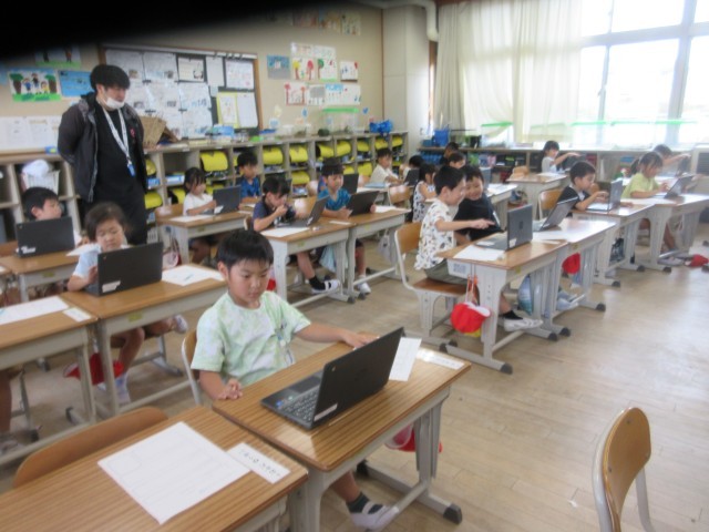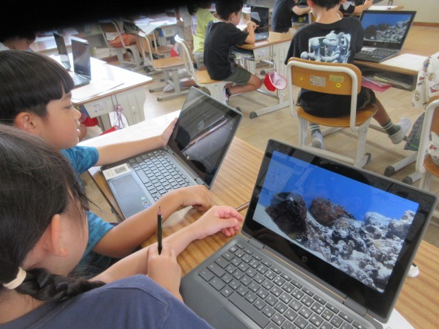 生活科(1年生)、音楽(3年生)、理科(5年生)の学習の様子です。