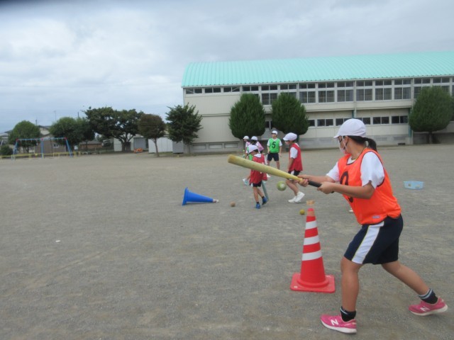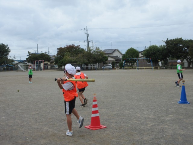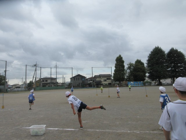 投げる、打つ、両方に共通している、”体を大きく使って”という動きをすることをめあてに、子供たちは熱心に活動していました。