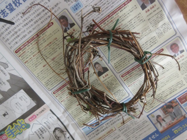 何とか外して、くるんと丸めてリースの下準備完了!